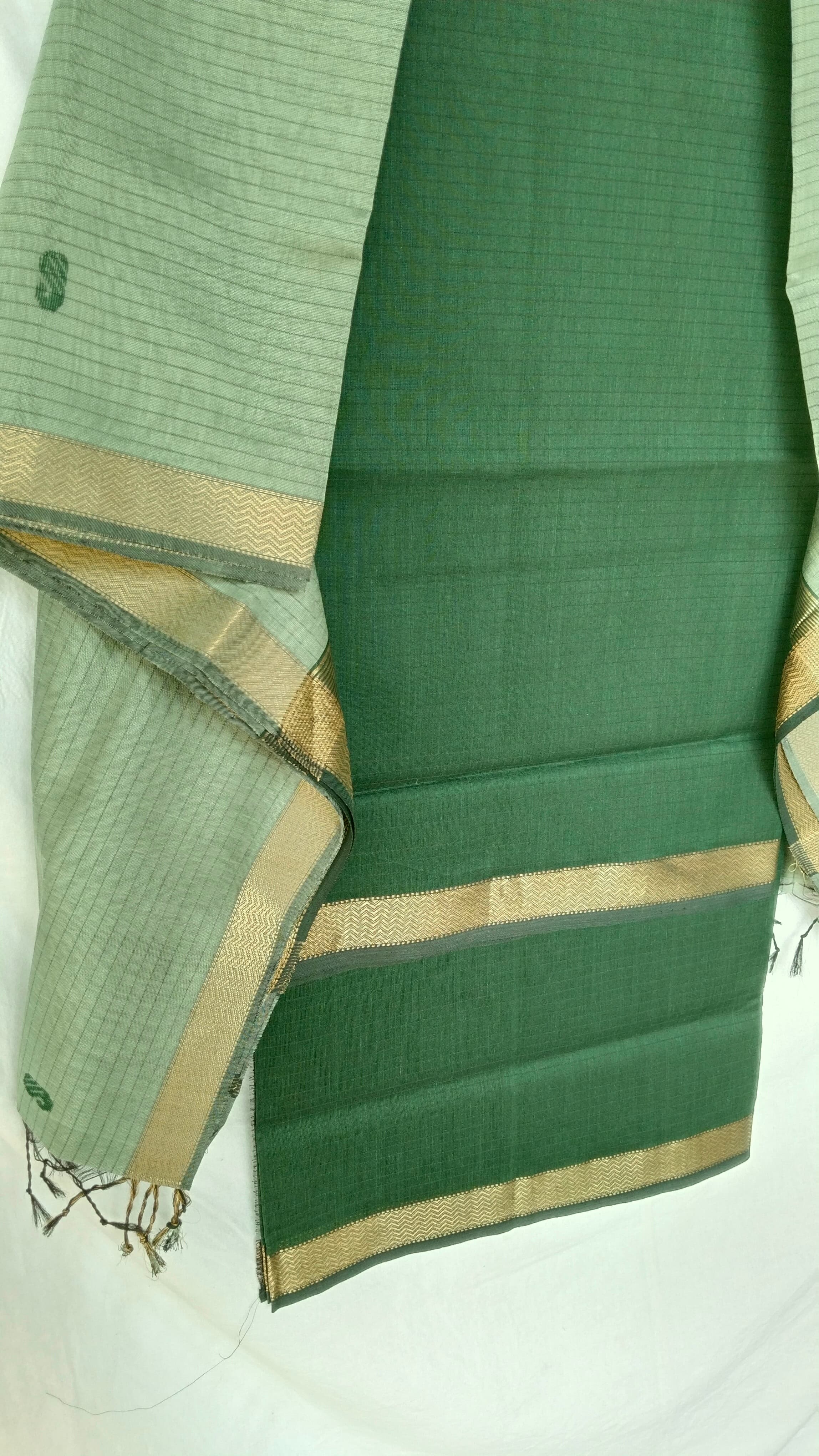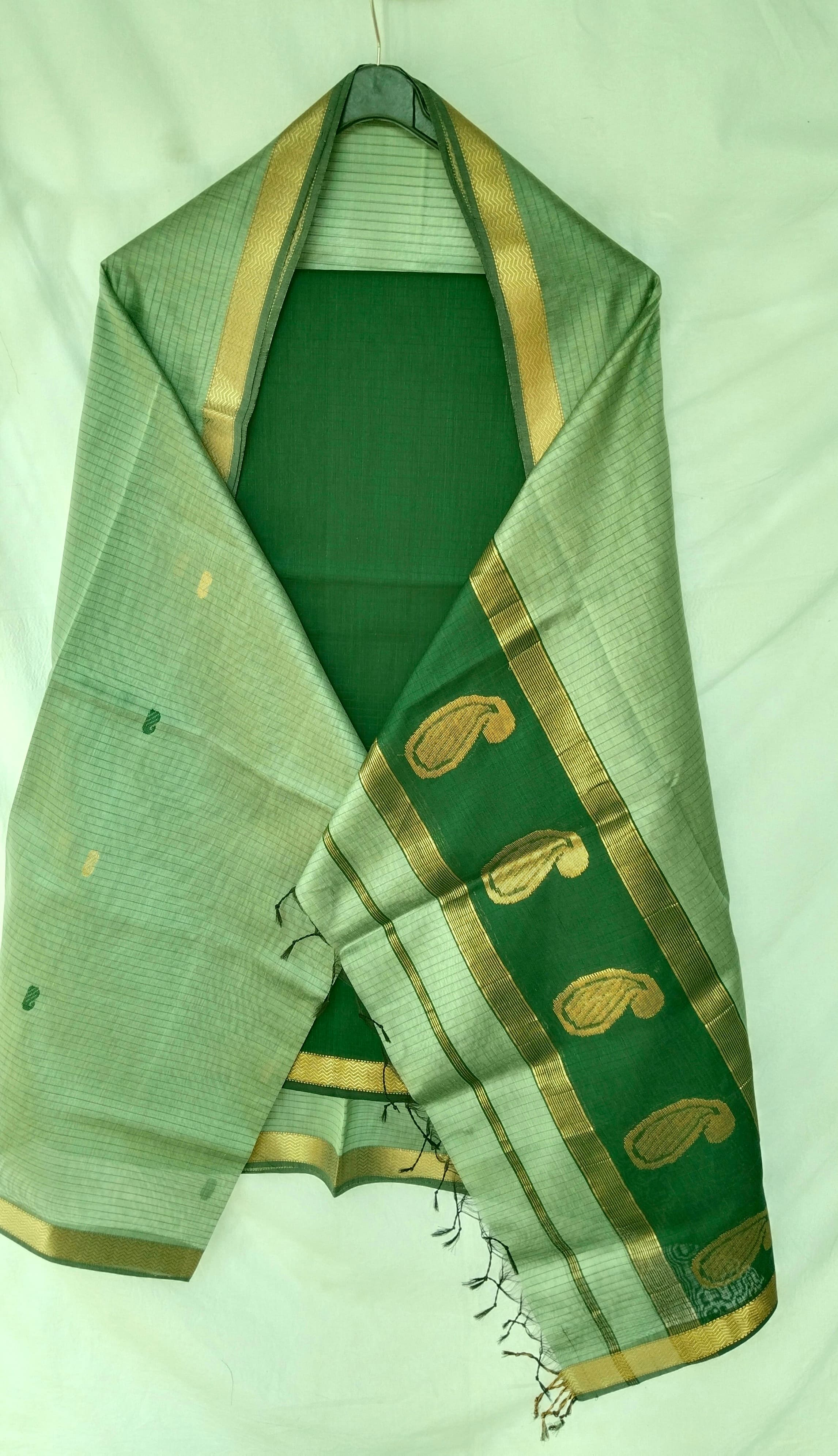 Dupatta - 2.5 meters- Sea Green, Top - 2.5 meters- Dark Green