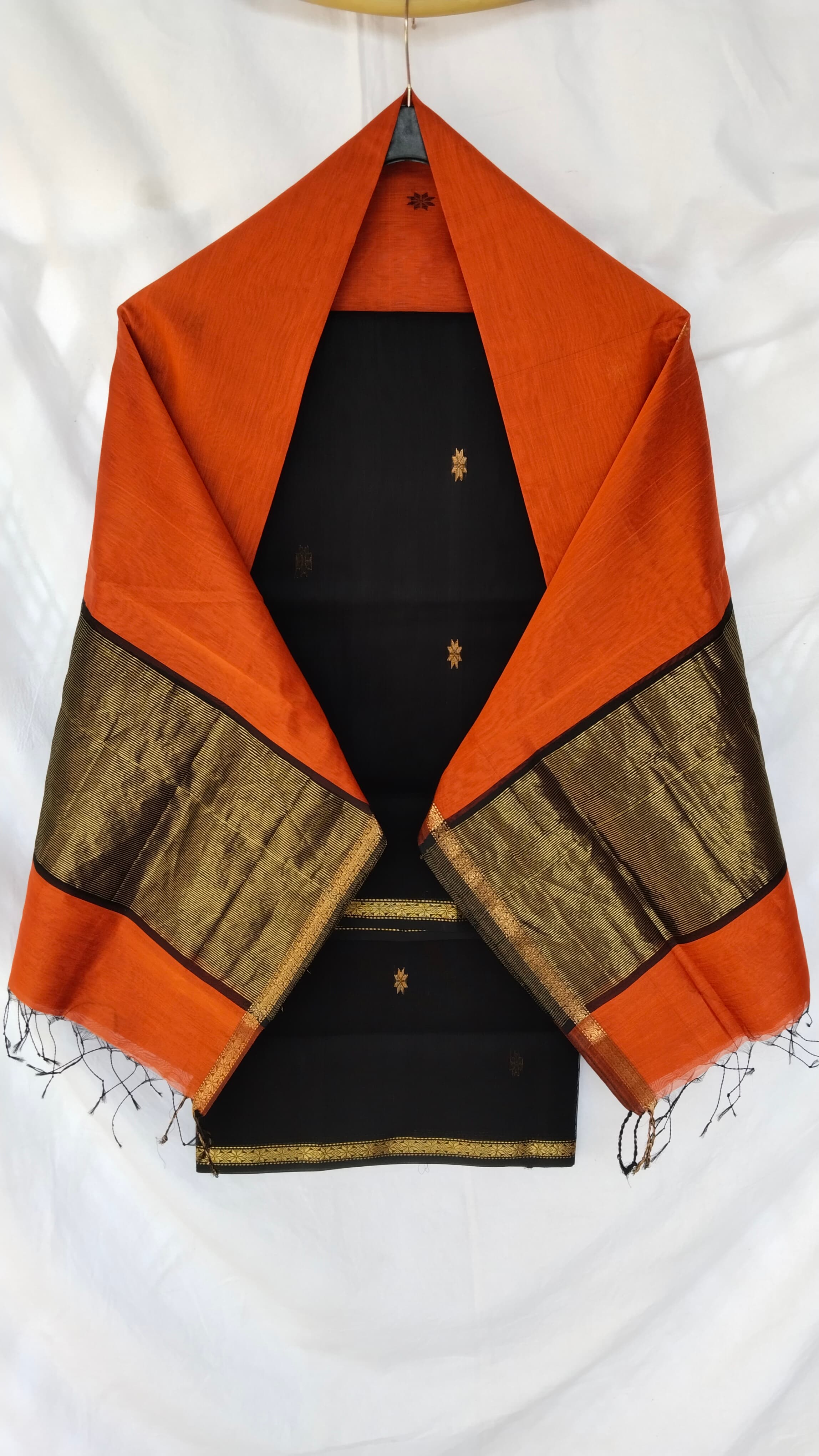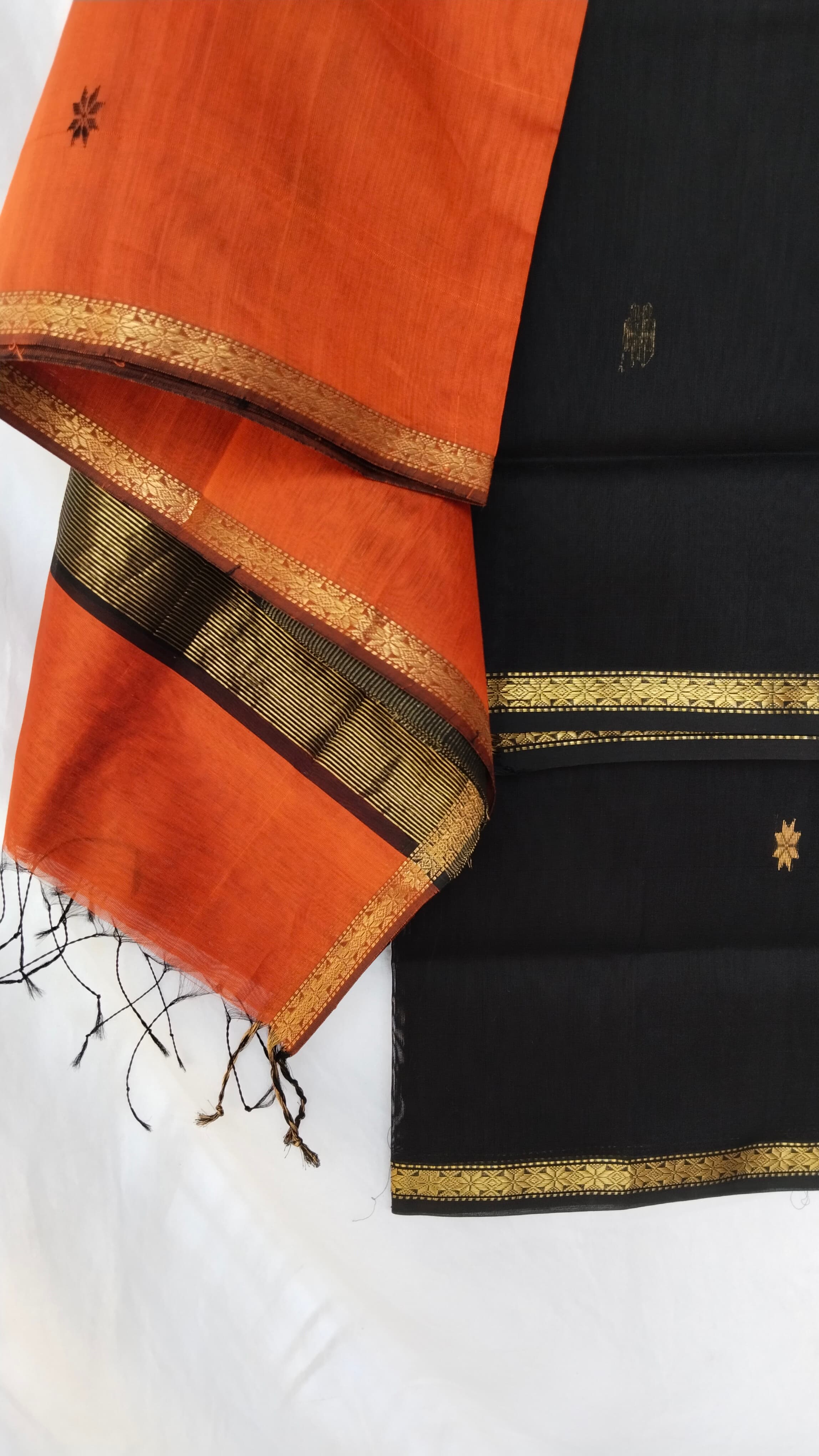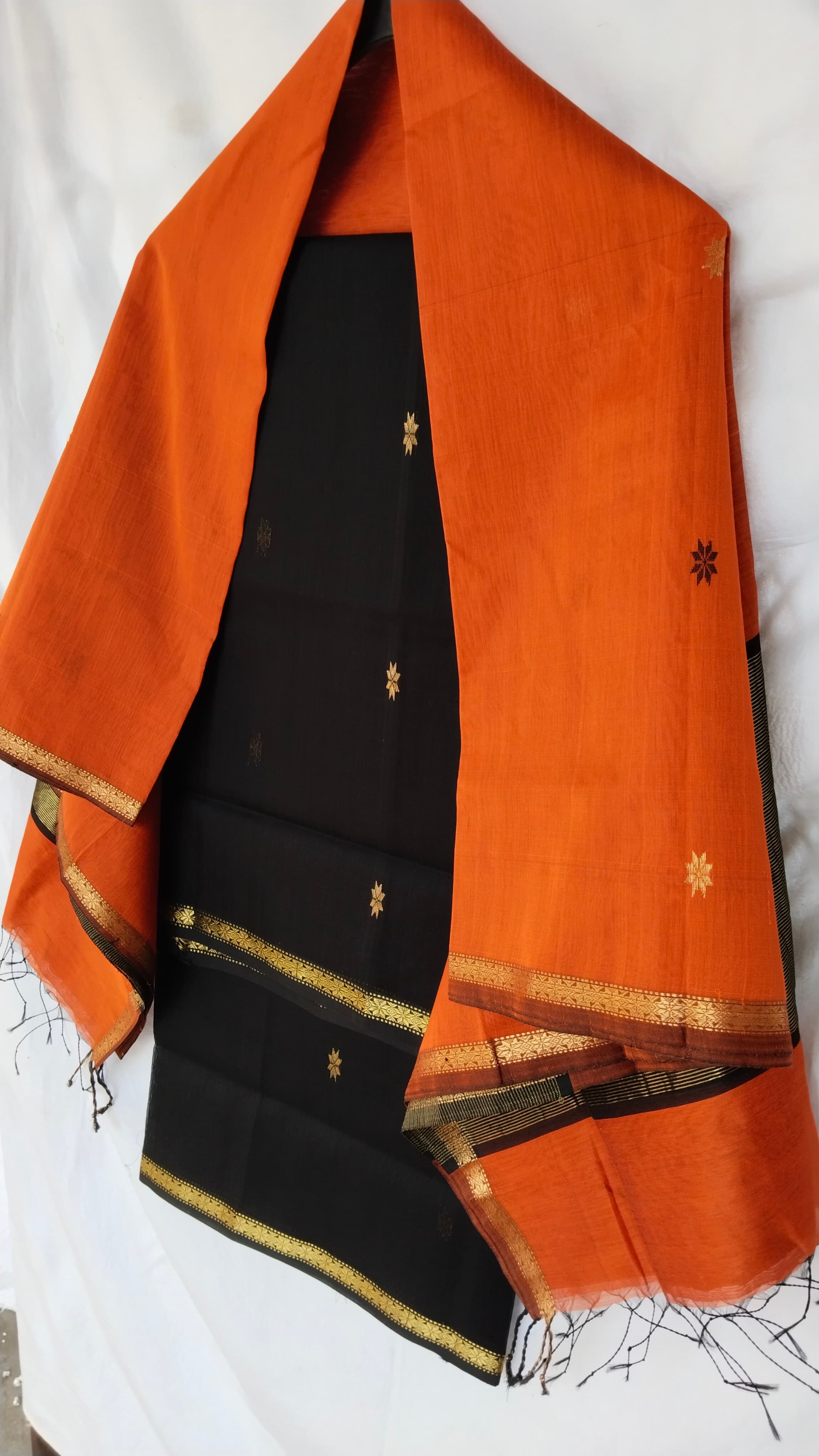 Dupatta - 2.5 meters- Orange, Top - 2.5 meters- Black