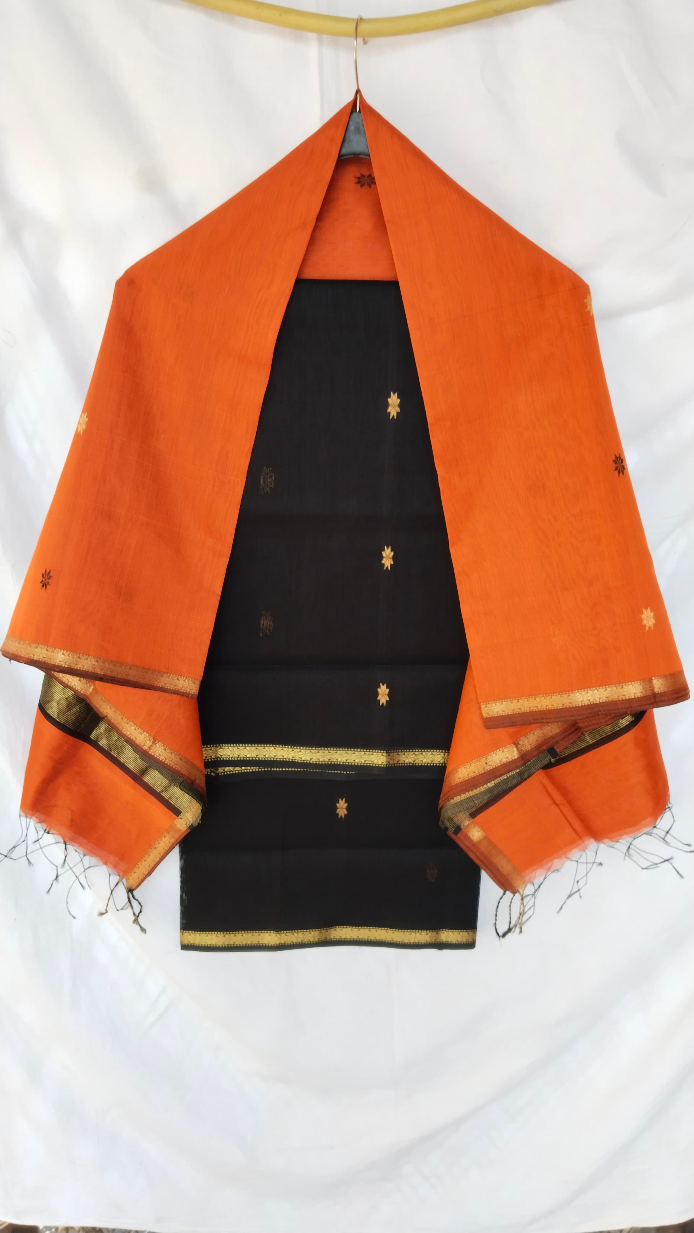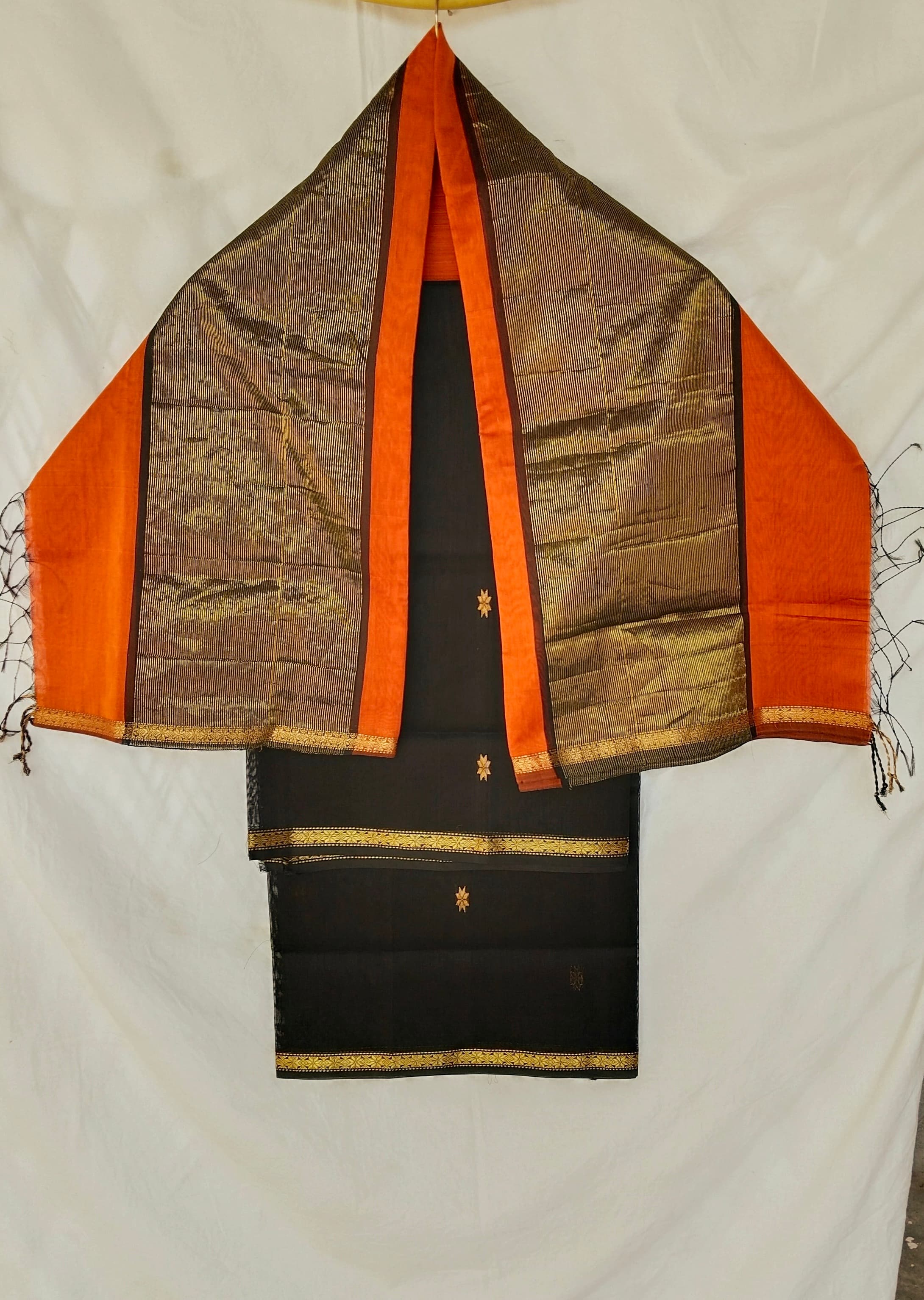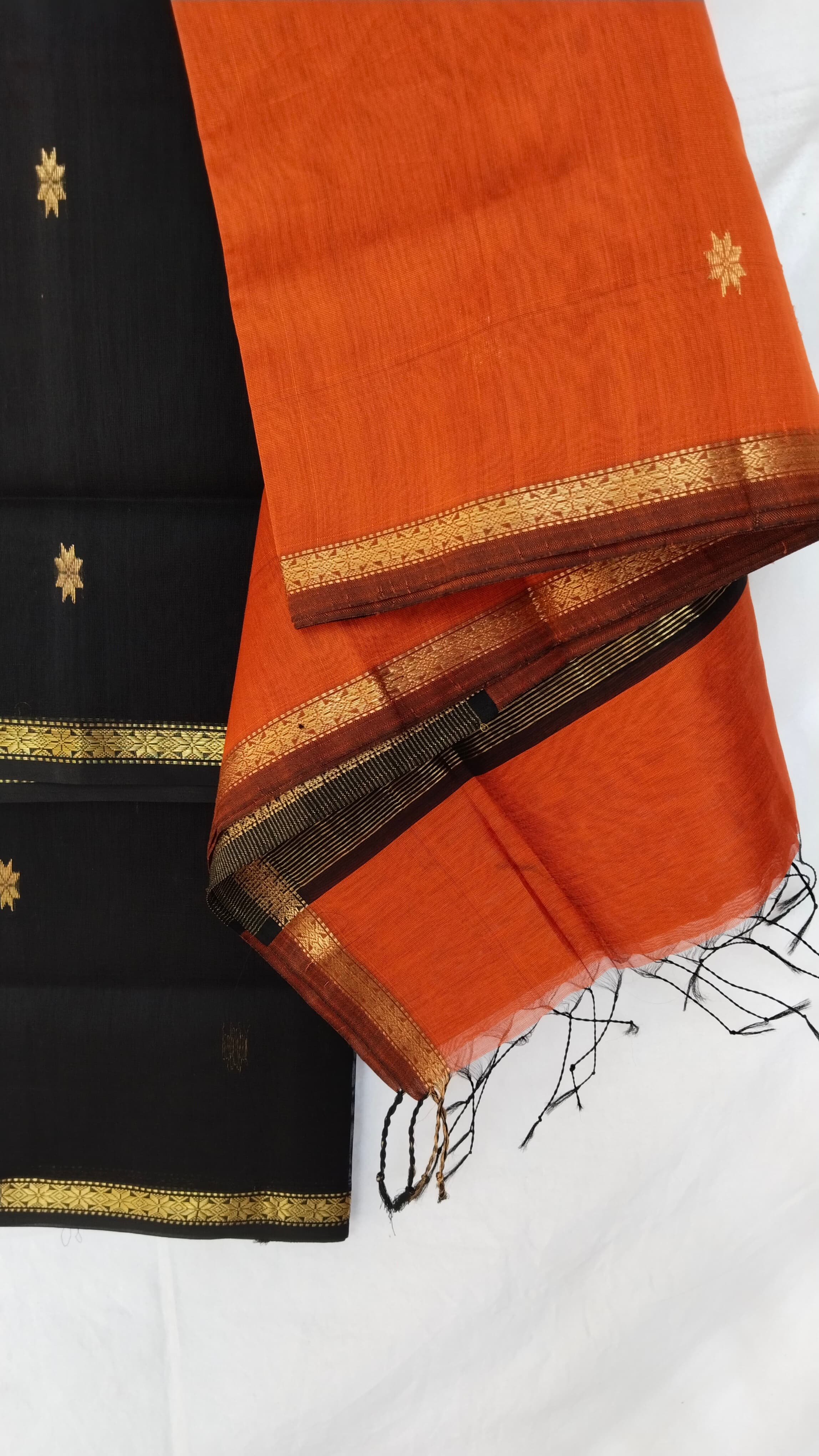 Dupatta - 2.5 meters- Orange, Top - 2.5 meters- Black