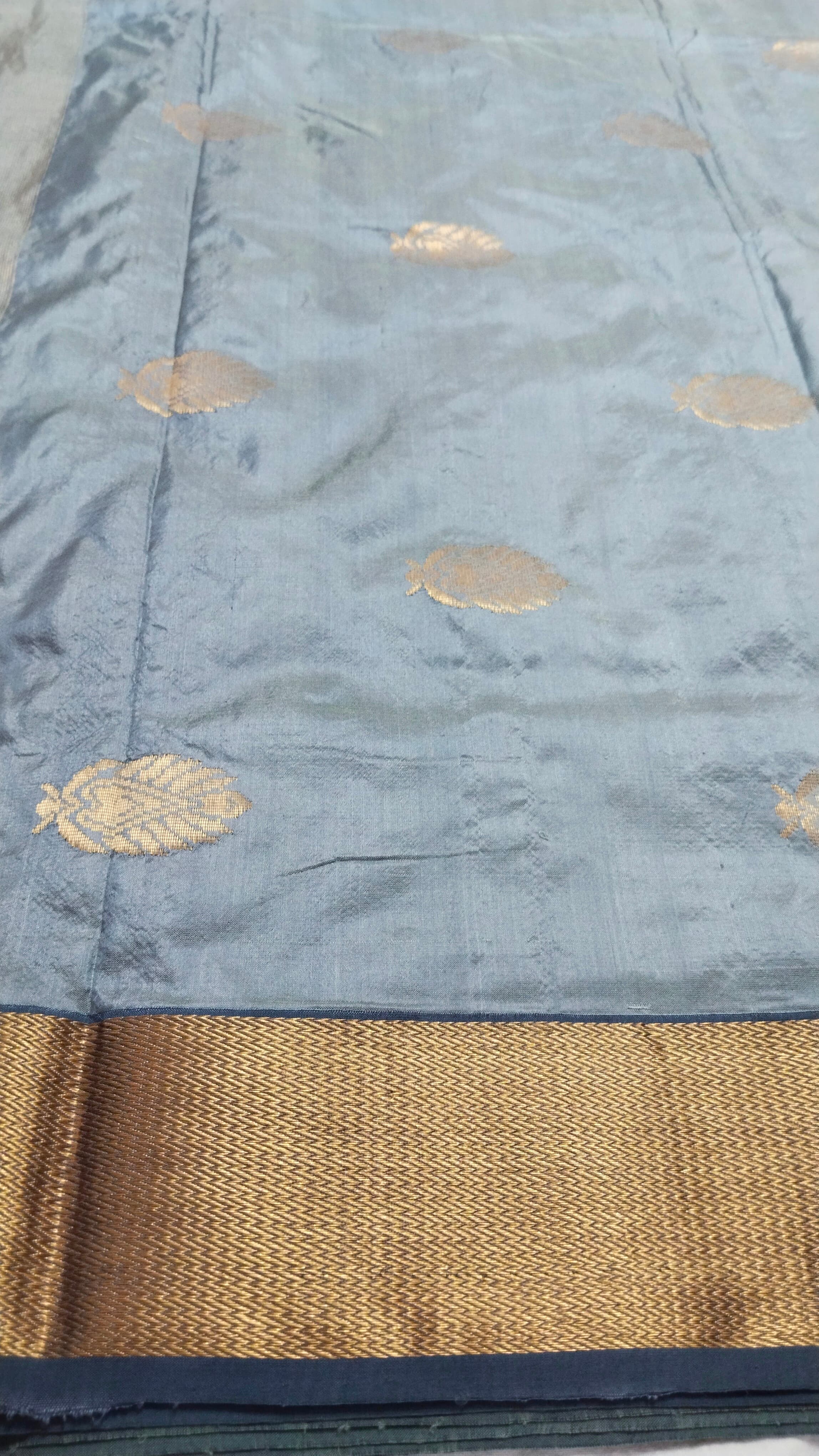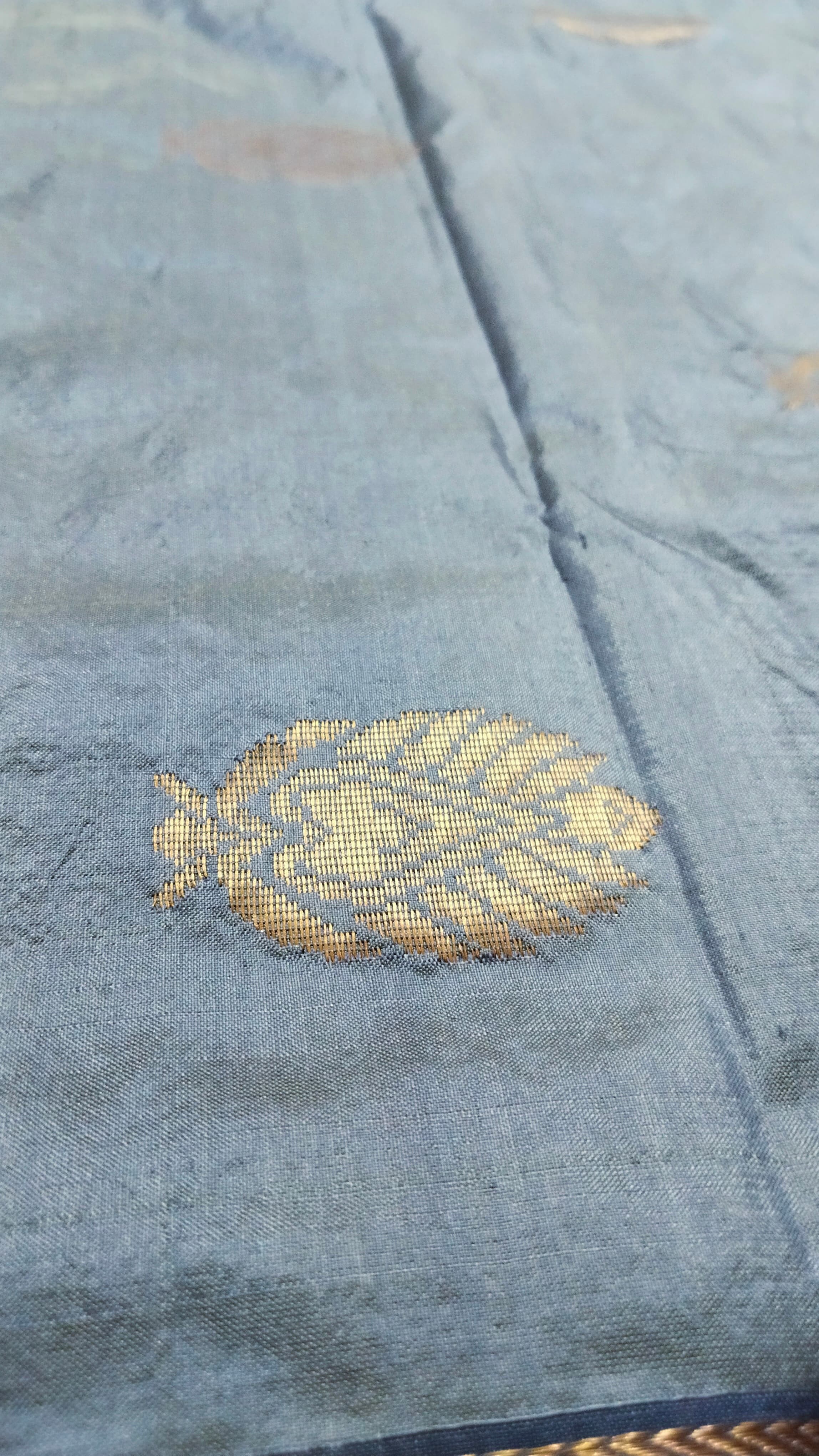 Woven on traditional pit looms in Maheshwar, this textile reflects centuries of handloom mastery — refined through patience, balance, and restraint.