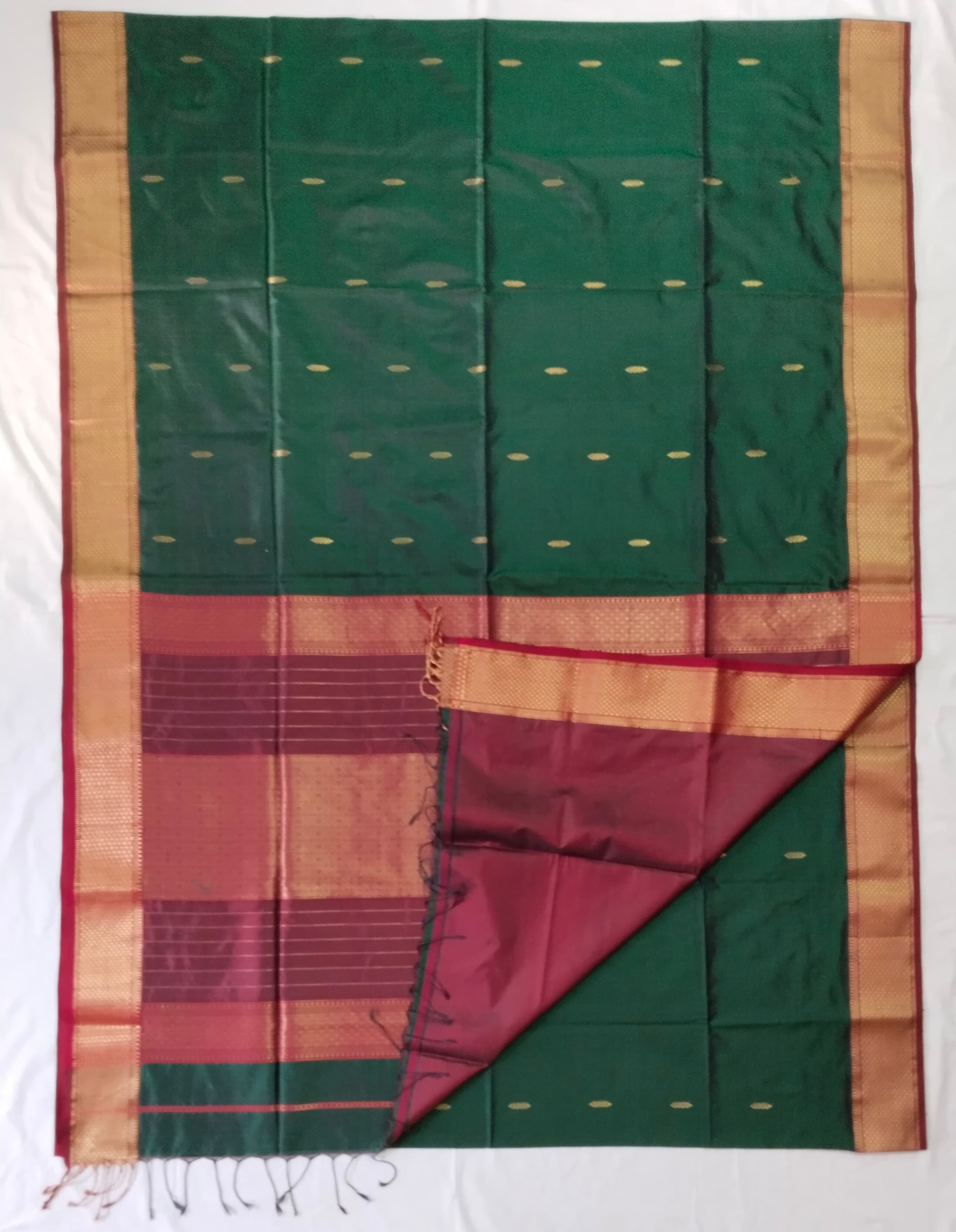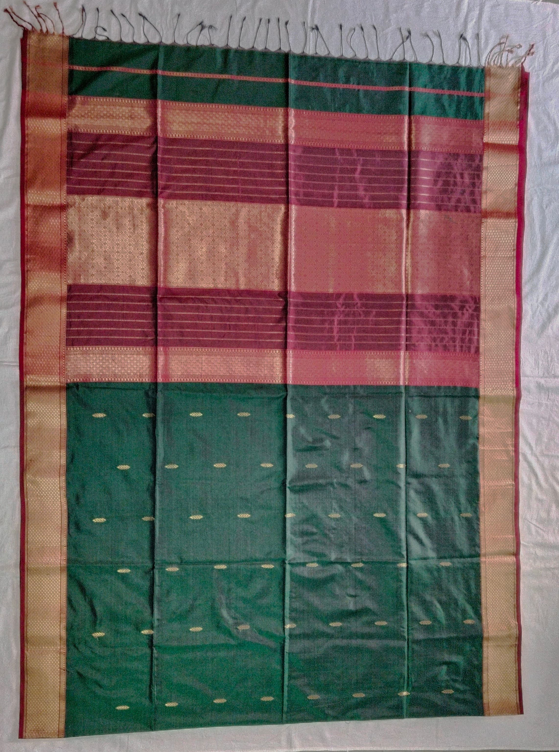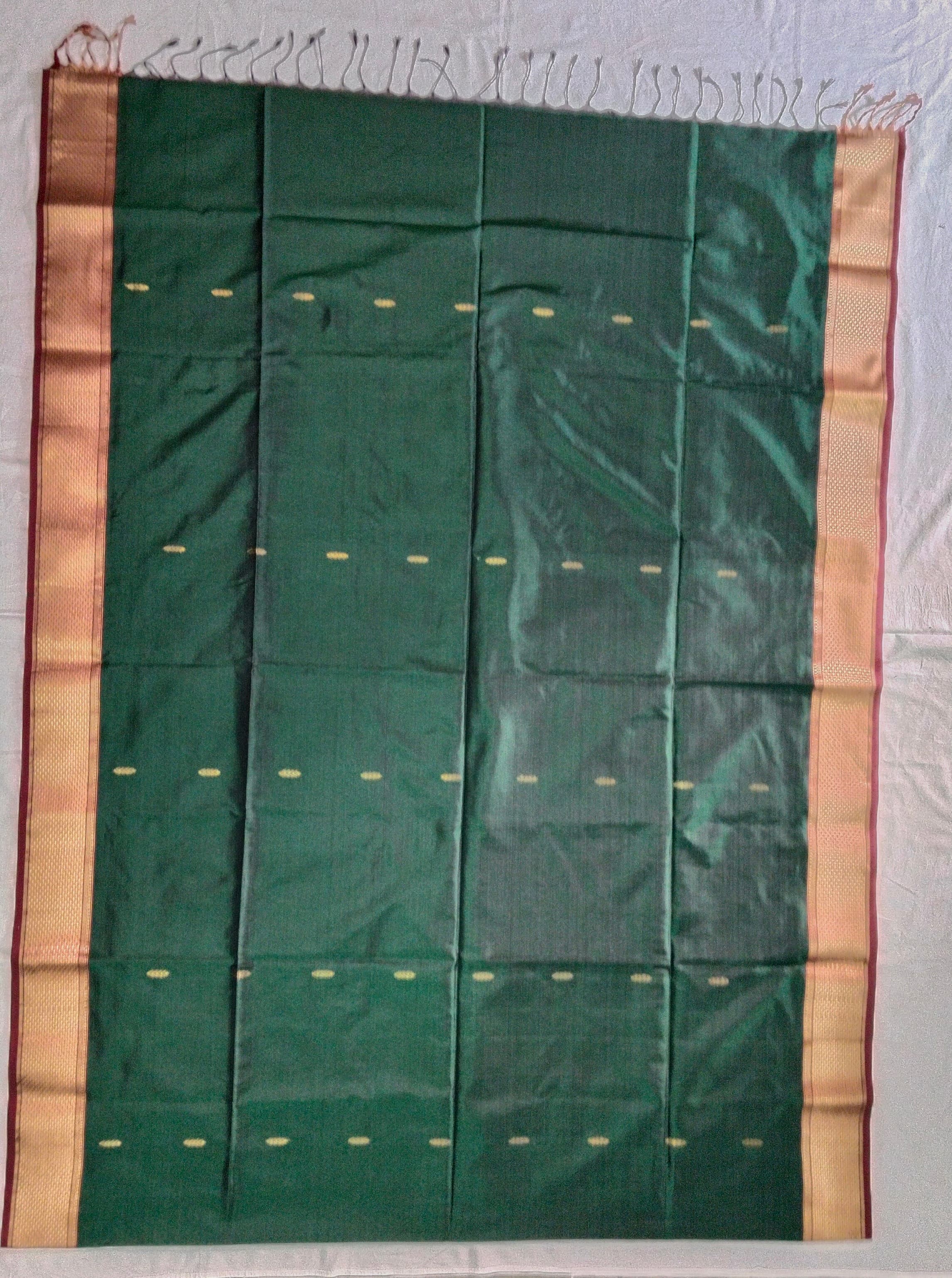 Heavy Pallu Pure Silk Maheshwari Saree | Bottle Green