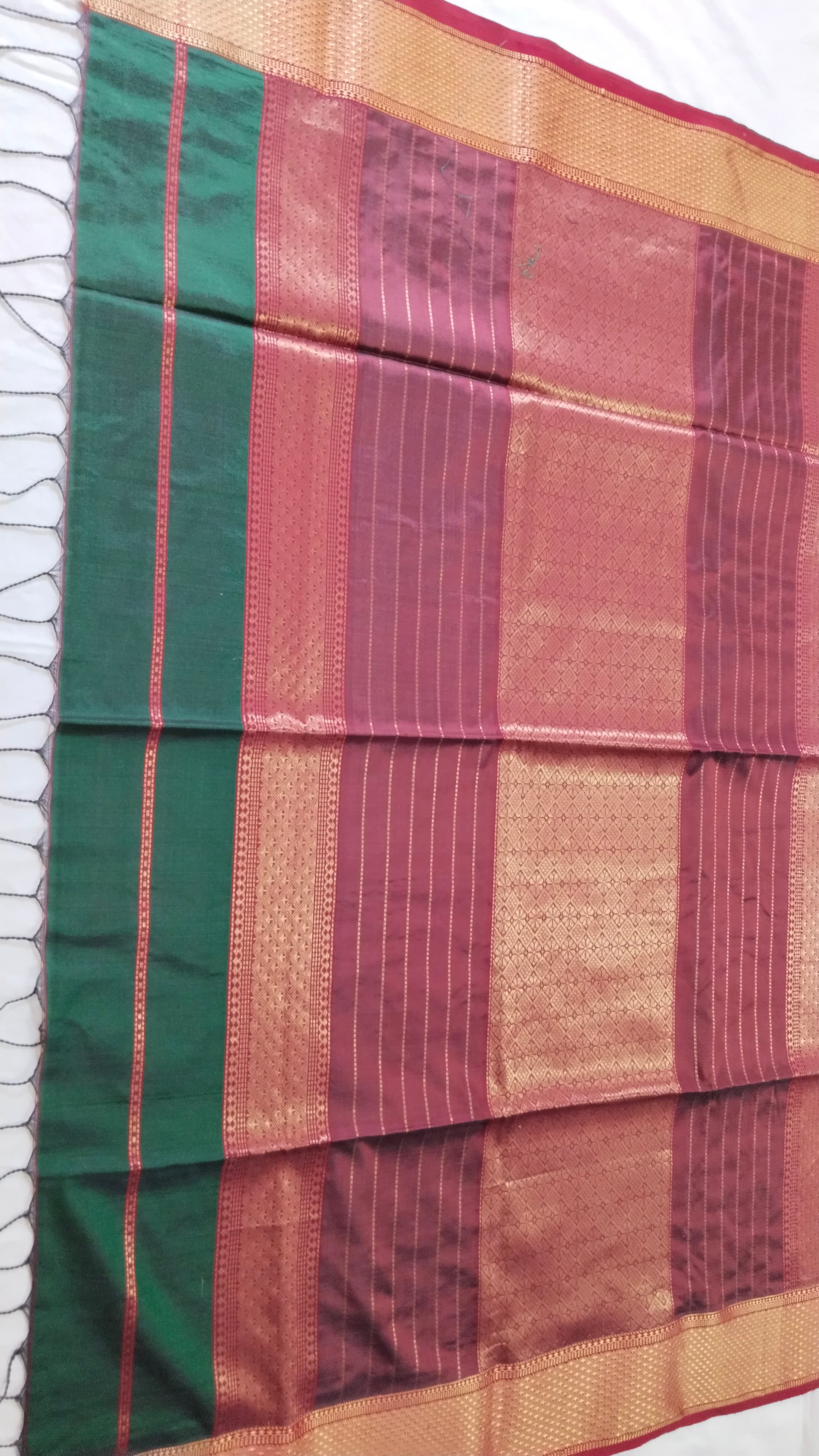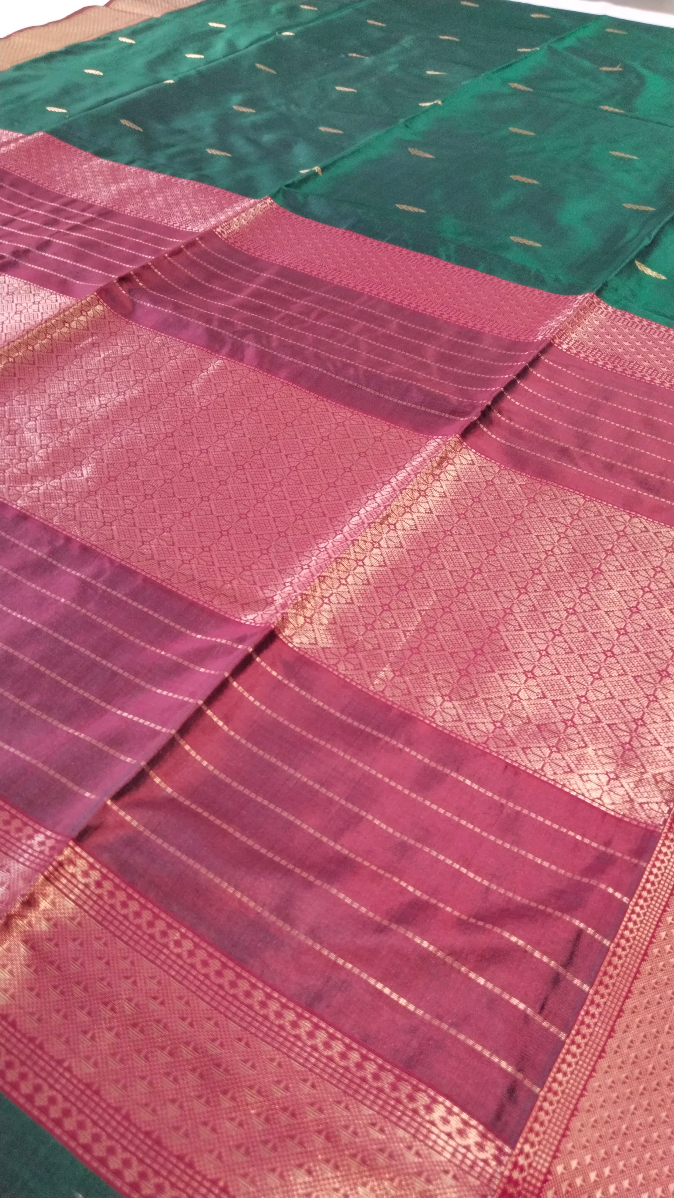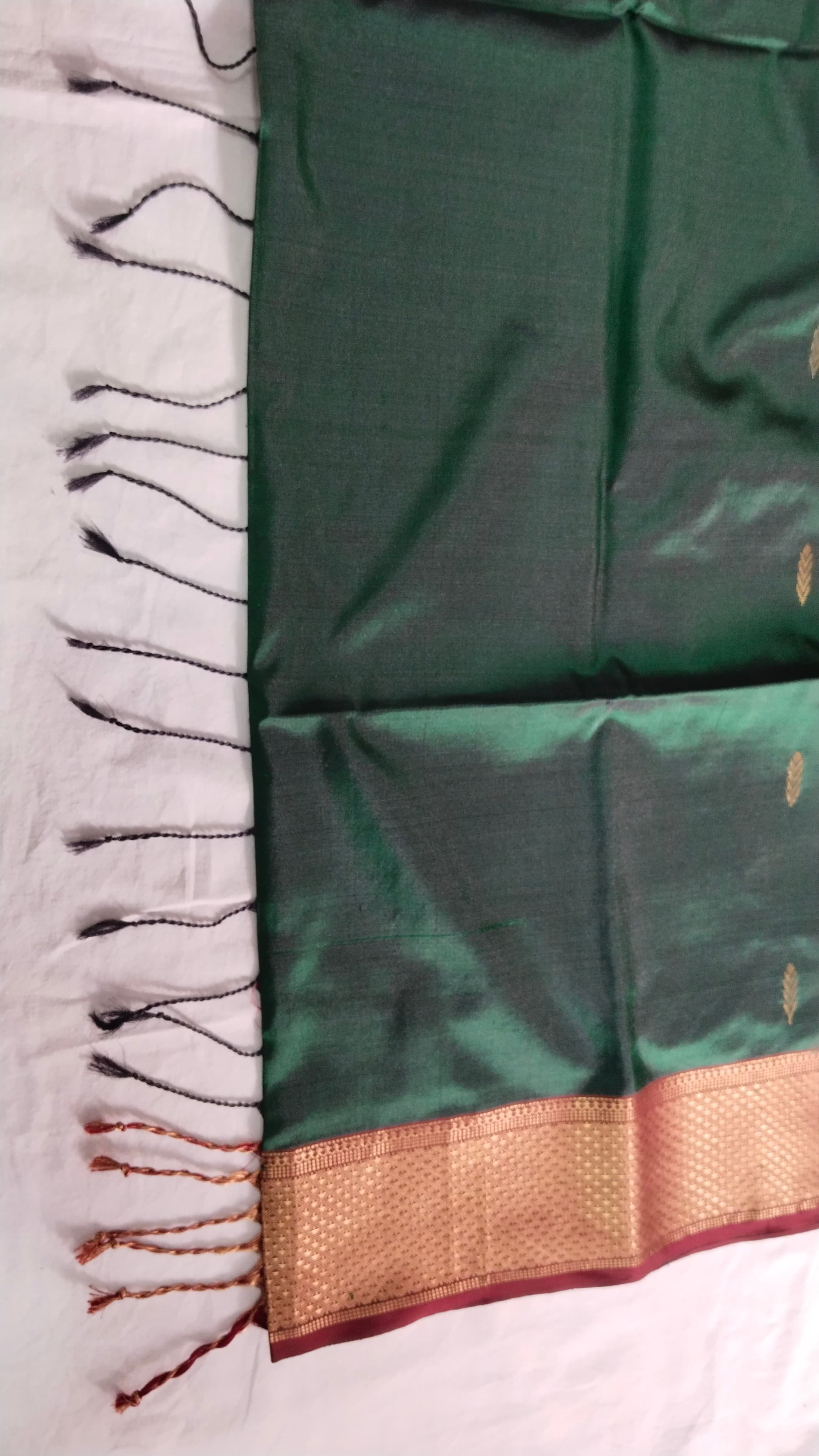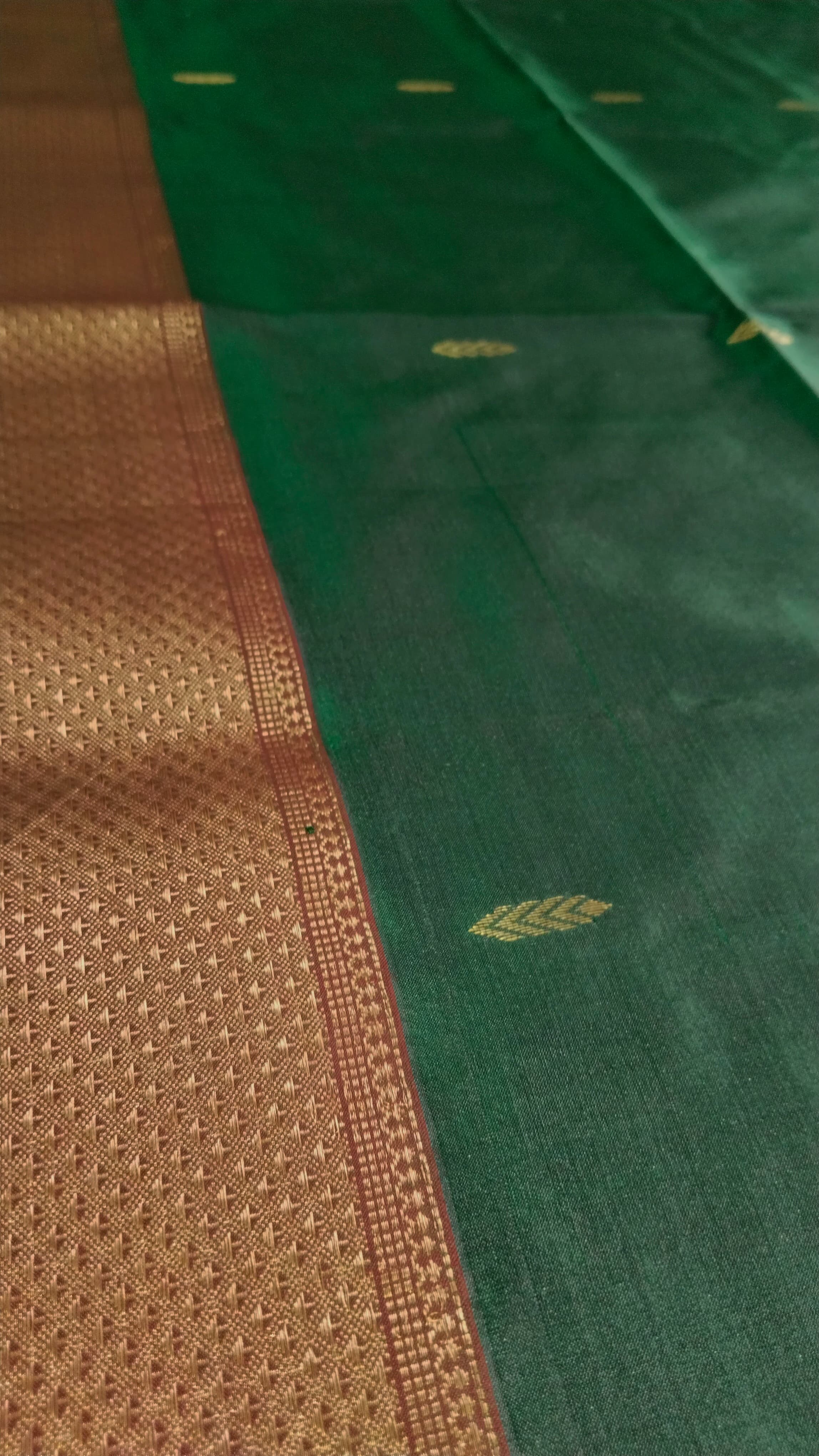 Heavy Pallu Pure Silk Maheshwari Saree | Bottle Green