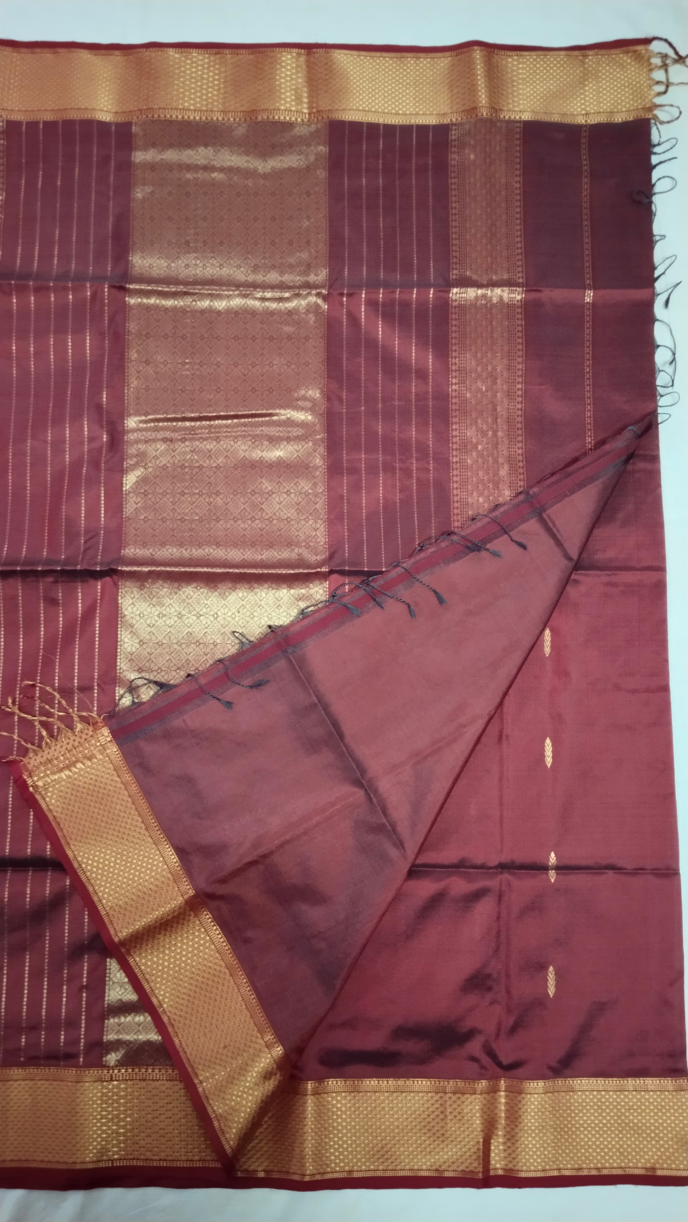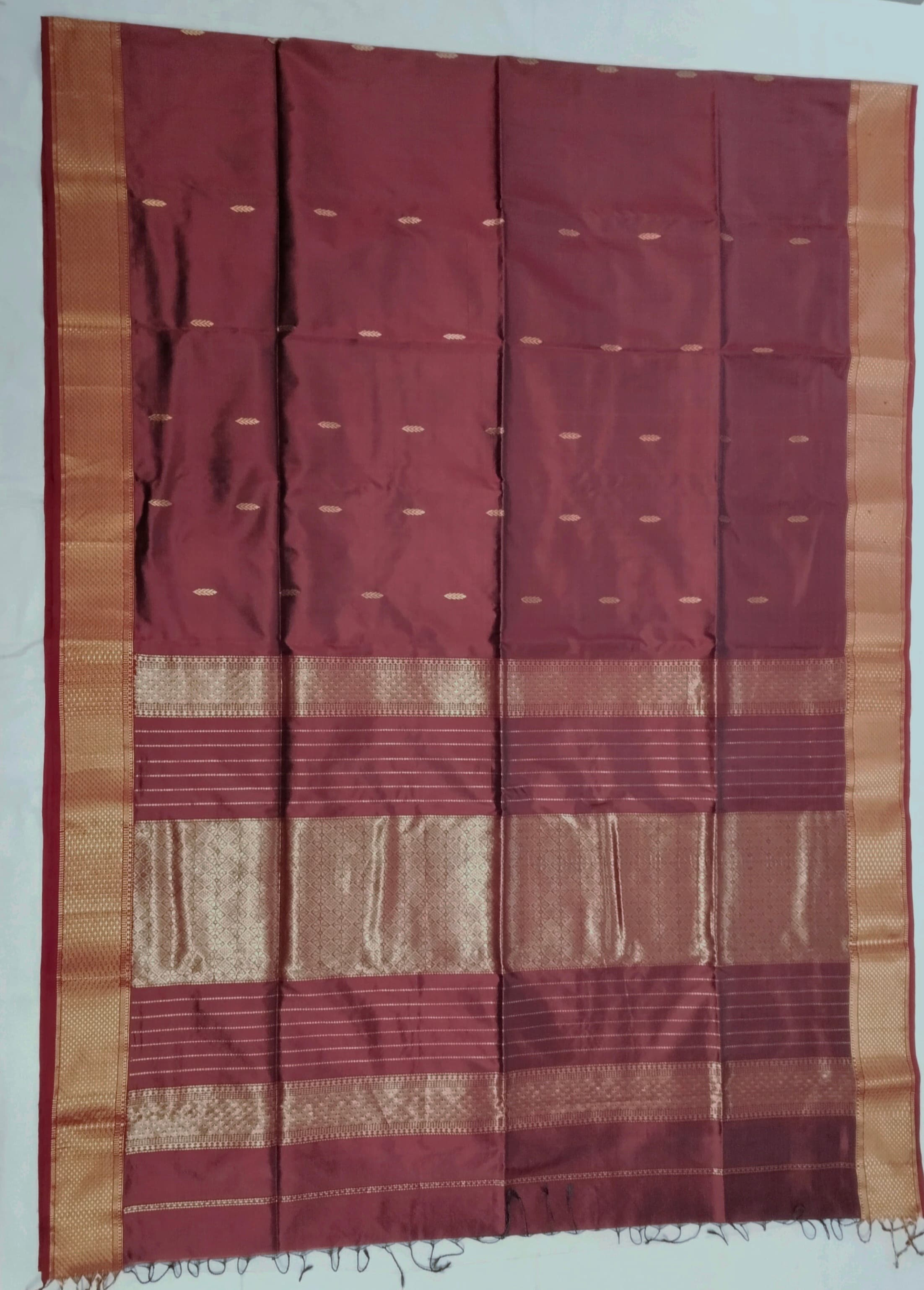 Heavy Pallu Pure Silk Maheshwari Saree | Wine Red