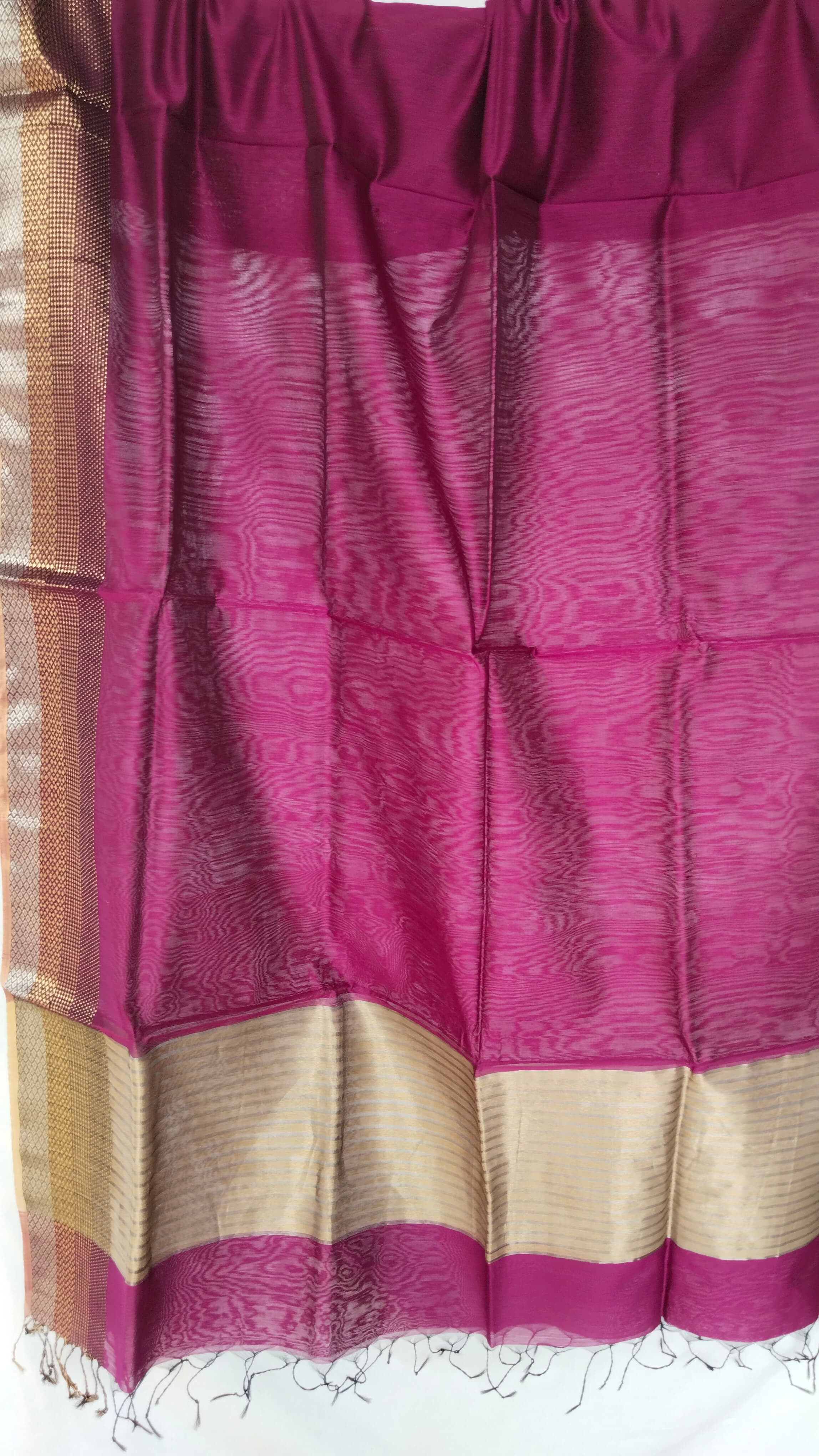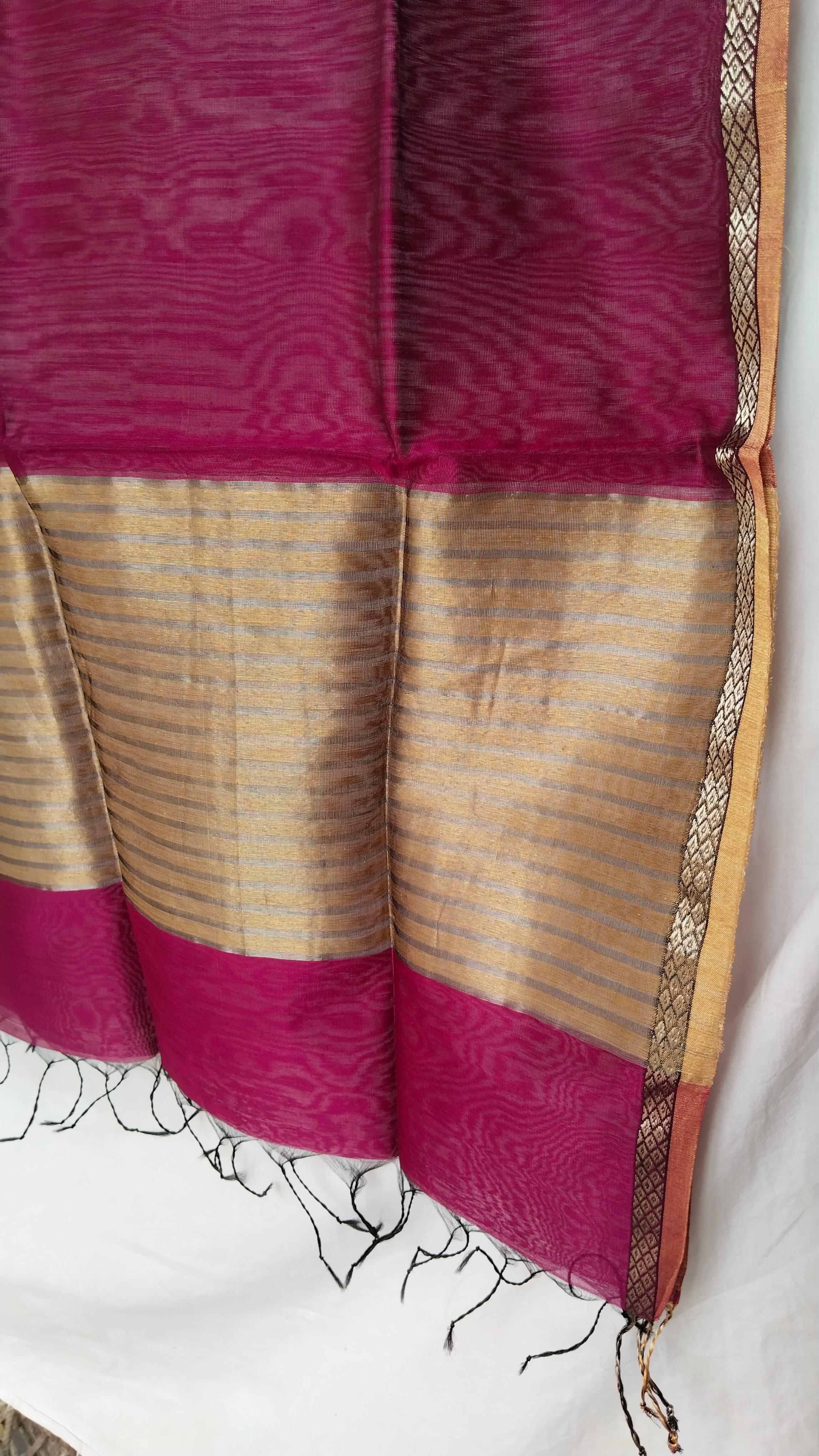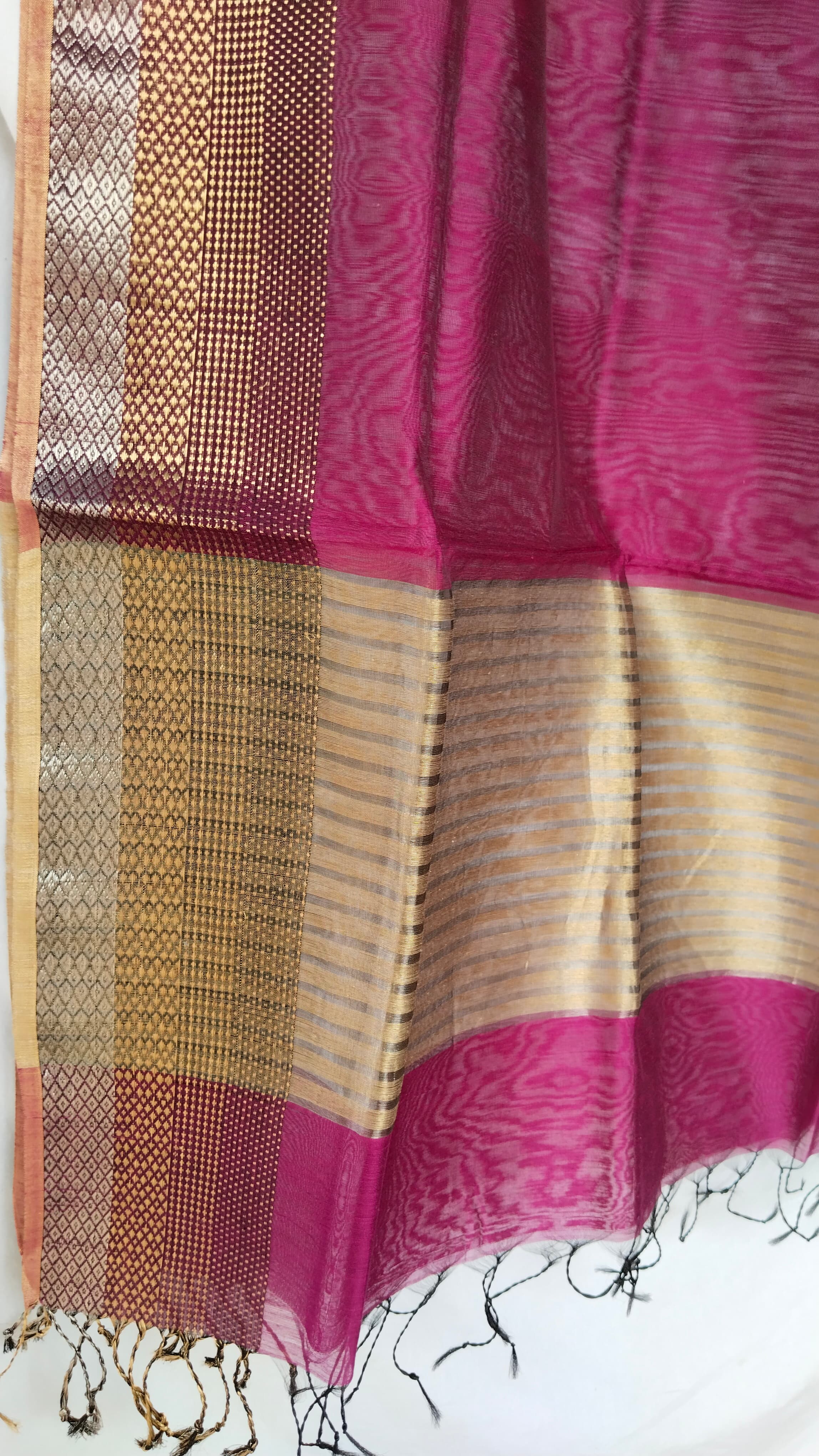 Woven on traditional pit looms in Maheshwar, this textile reflects centuries of handloom mastery — refined through patience, balance, and restraint.